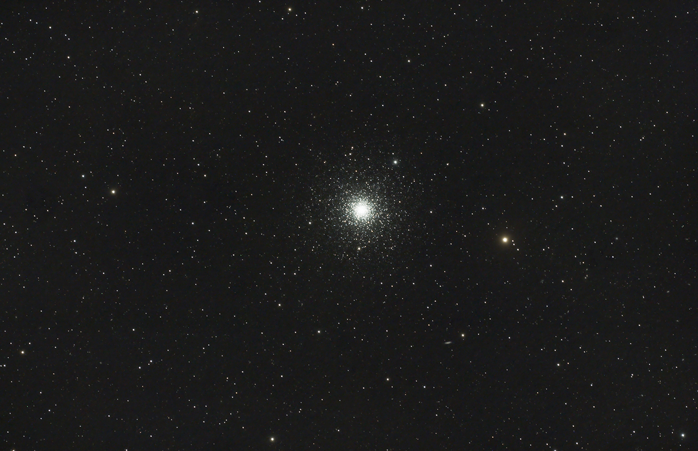 Les amas globulaires sont des objets célestes exceptionnels. Par exemple, sur cette image de l’amas globulaire M3, vous voyez le rassemblement d’½ million d’étoiles liés ensemble par la gravité et concentrées dans un diamètre de 160 années-lumière. Il se situe dans le halo de notre Galaxie à environ 34 000 années-lumière de chez nous et, il est presque visible à l’œil nu. Sa magnitude apparente est de 6,4, ce qui correspond à une magnitude absolue de -8,93 [1]. Phénoménal, n’est-ce pas ?